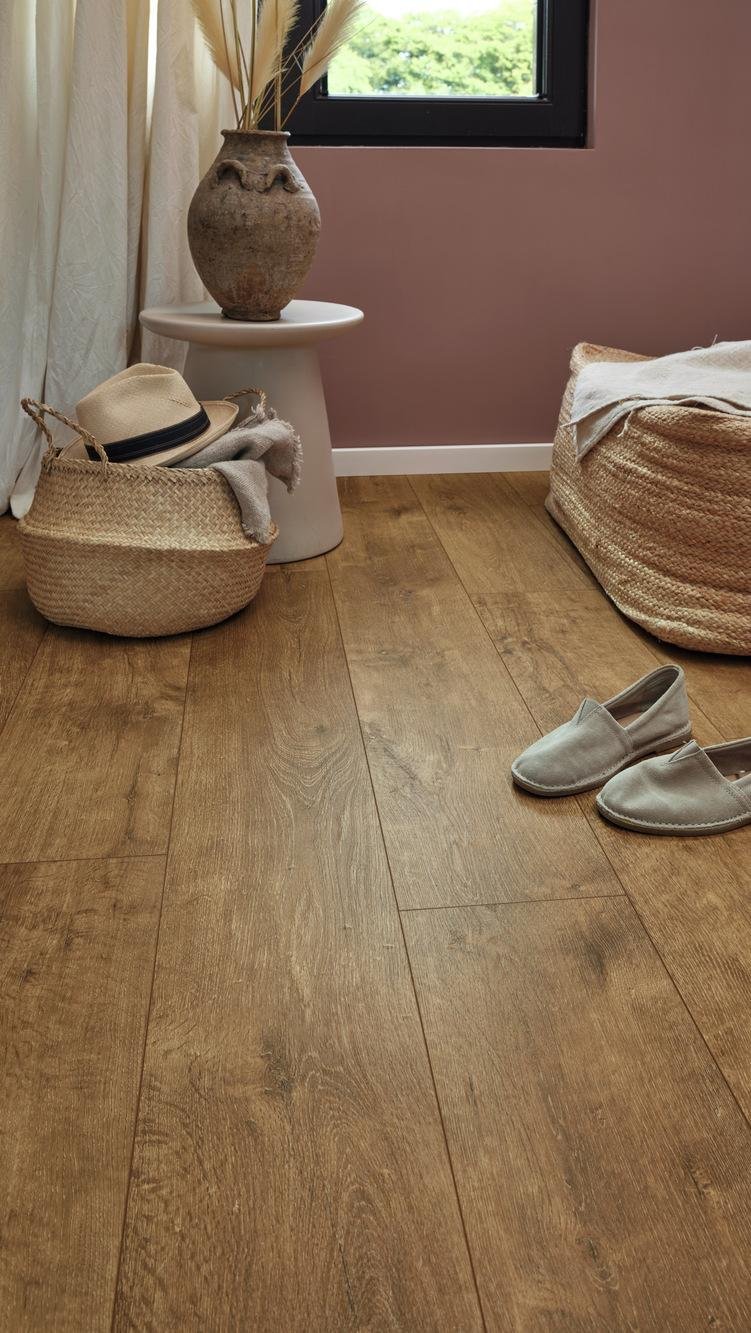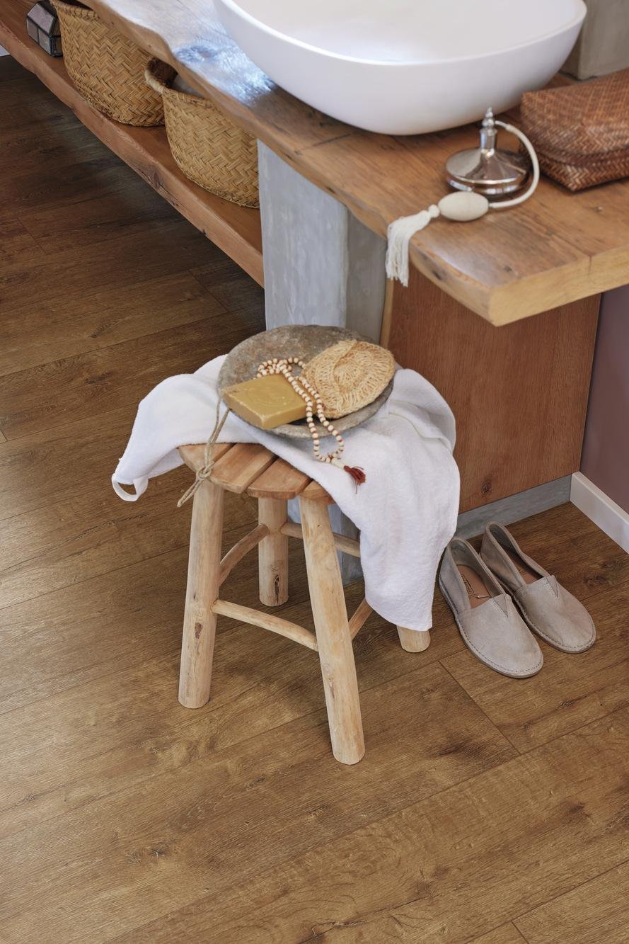 Con una clasificación de resistencia al agua de 4 h, MeisterDesign Flex ofrece una durabilidad excepcional y es adecuado incluso para áreas húmedas. El formato práctico de tablón corto de la colección DD 400 es perfecto para espacios pequeños y facilita tanto su transporte como su instalación.